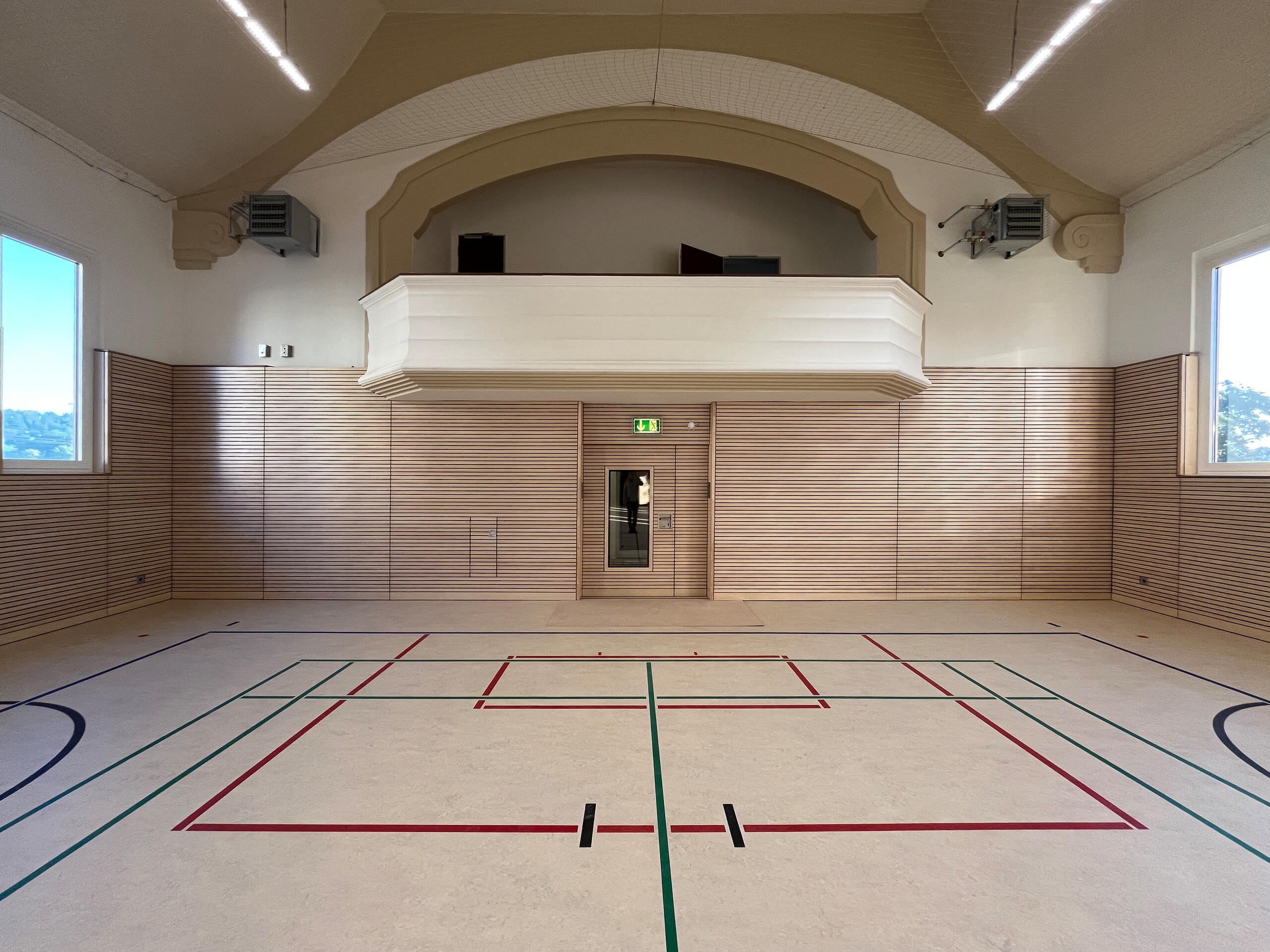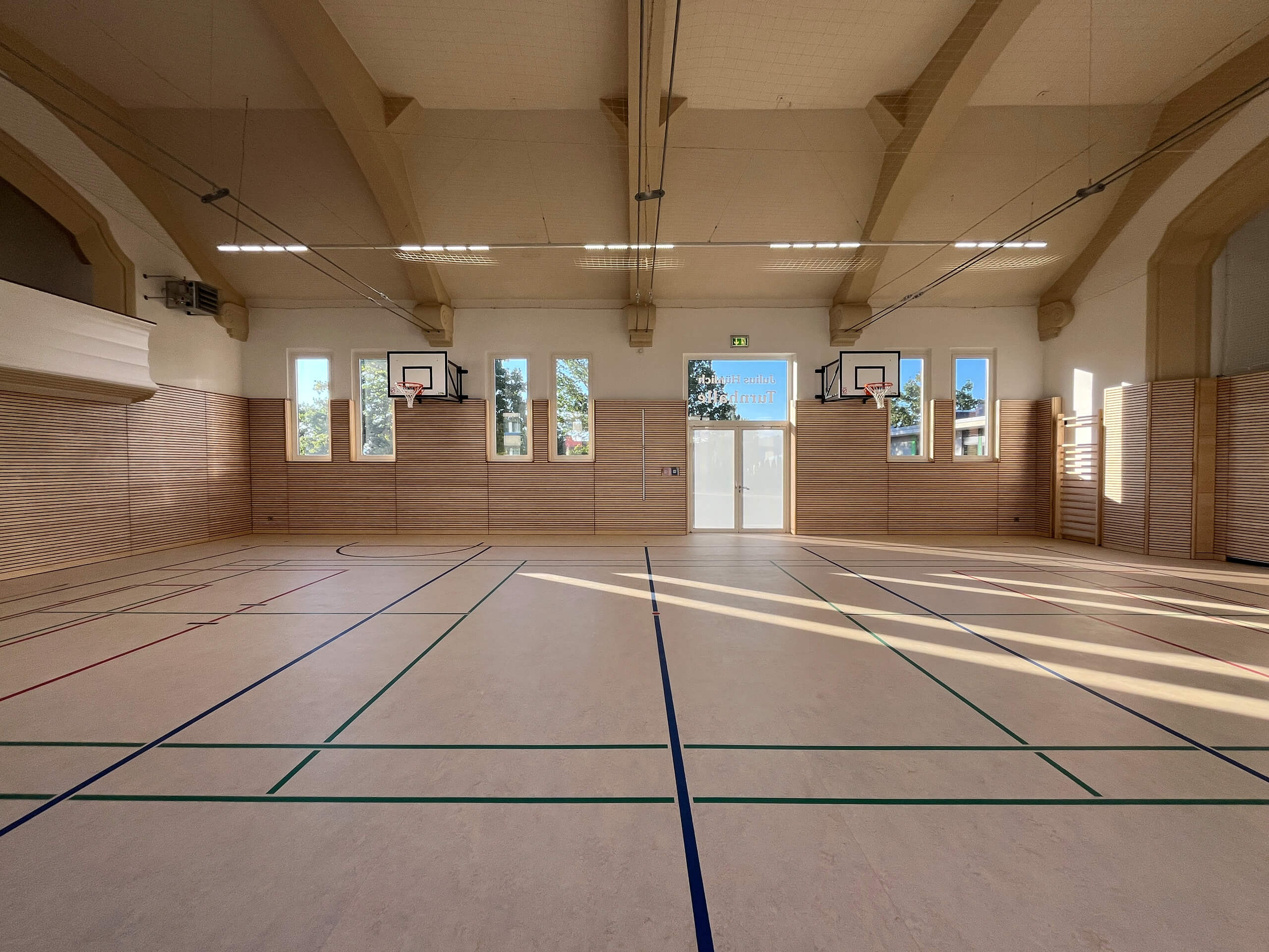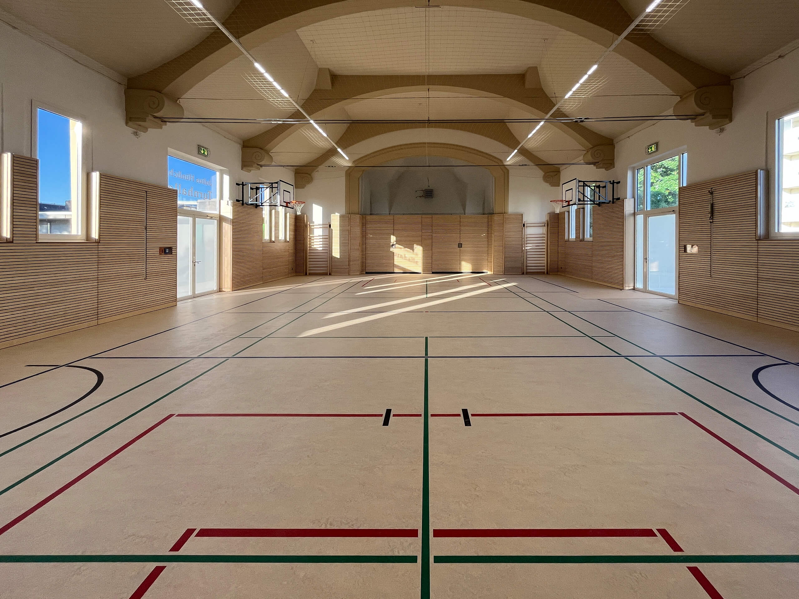 • Erneuerung der Sporthallenflächen: neuer Sportboden, frische Anstriche und neue Prallwände